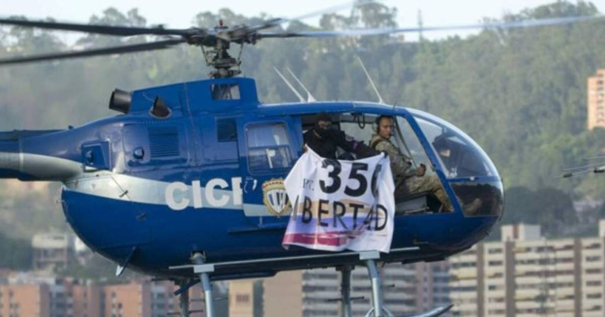 En las redes sociales circularon fotos del helicóptero sobrevolando Caracas con un cartel que decía '350 Libertad', en referencia al artículo constitucional que establece el desconocimiento de gobiernos que contraríen las garantías democráticas.