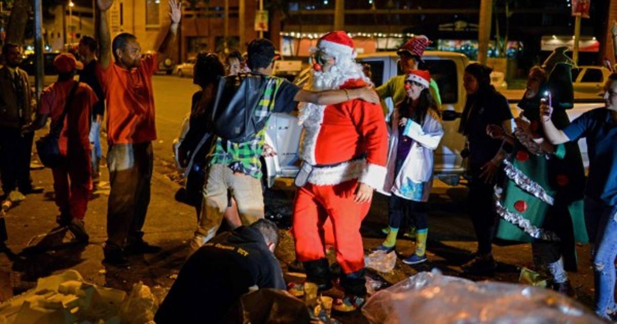 Esta vez, en una Caracas sin luces ni decorado navideño, Santa y sus duendes entregaron comida, medicinas, ropa y juguetes a niños, ancianos y personas sin hogar.