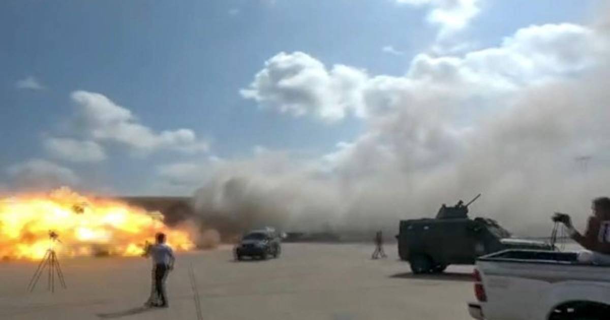 Las imágenes difundidas por estos muestran que las explosiones se produjeron cuando los ministros estaban desembarcando del avión y en un plano se aprecia lo que parece ser un misil impactando en el aeropuerto y provocando una de las explosiones.