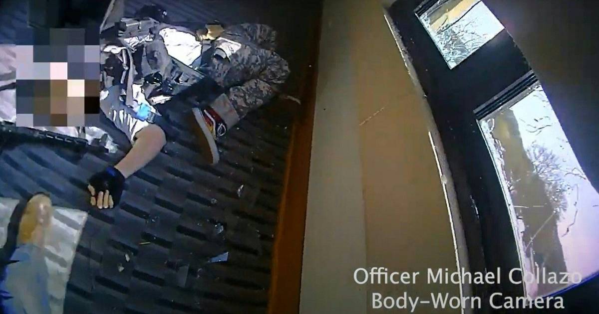 Tras subir las escaleras hasta el segundo piso del colegio, alrededor del minuto 3:22 de la grabación, los agentes Rex Engelbert, que lleva cuatro años en el cuerpo, y Michael Collazo, con una experiencia de nueve años, disparan contra la persona asaltante, que murió en ese enfrentamiento.
