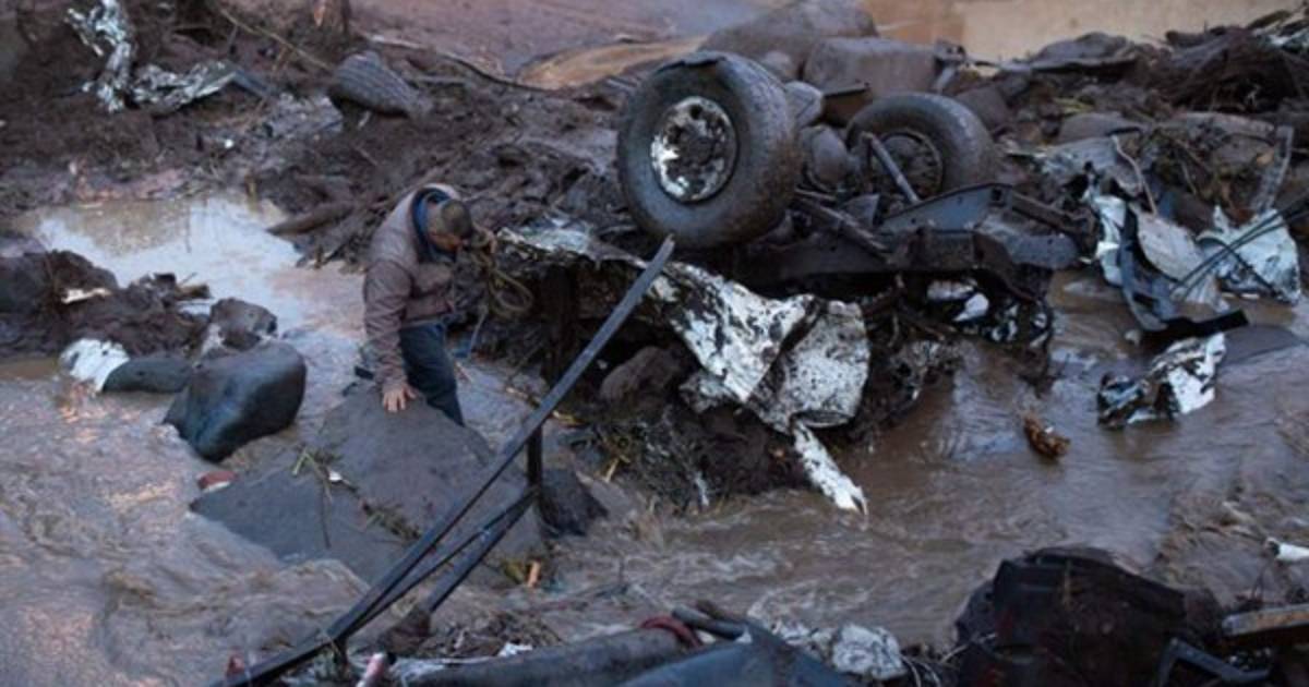 Las imágenes muestran cómo una avalancha de lodo se traga a un automóvil mientras era filmado por una familia que se encontraba cerca. El ocupante de un turismo blanco quedó atrapado por la corriente e intentó salir; sin embargo, el deslave fue más fuerte y lo arrastró.