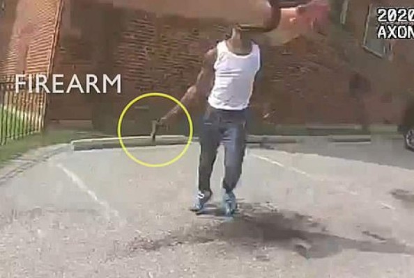 Según imágenes captadas por la cámara portátil de un policía, éste persigue a un sospechoso y se da vuelta cuando Deon Kay parece salir de la parte trasera de un auto con un arma en la mano. El agente dispara y el joven cae tomándose el pecho. Según las imágenes, de mala calidad, Kay no parece haber apuntado al policía.