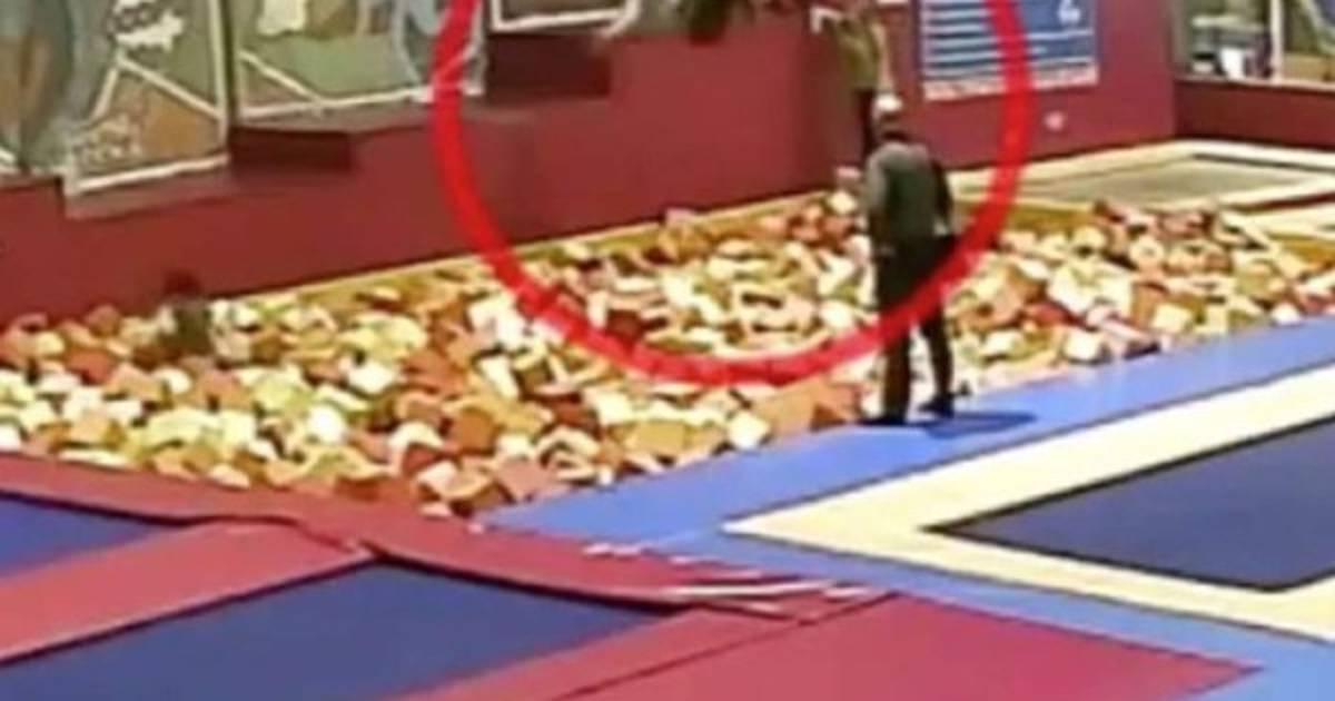 En determinado momento el funcionario se subió a una de las tarimas e intentó dar una vuelta en el aire para caer sobre una piscina de ladrillos de goma espuma. Pero el salto salió mal, cayó de espaldas y se dio un golpe en la cabeza.