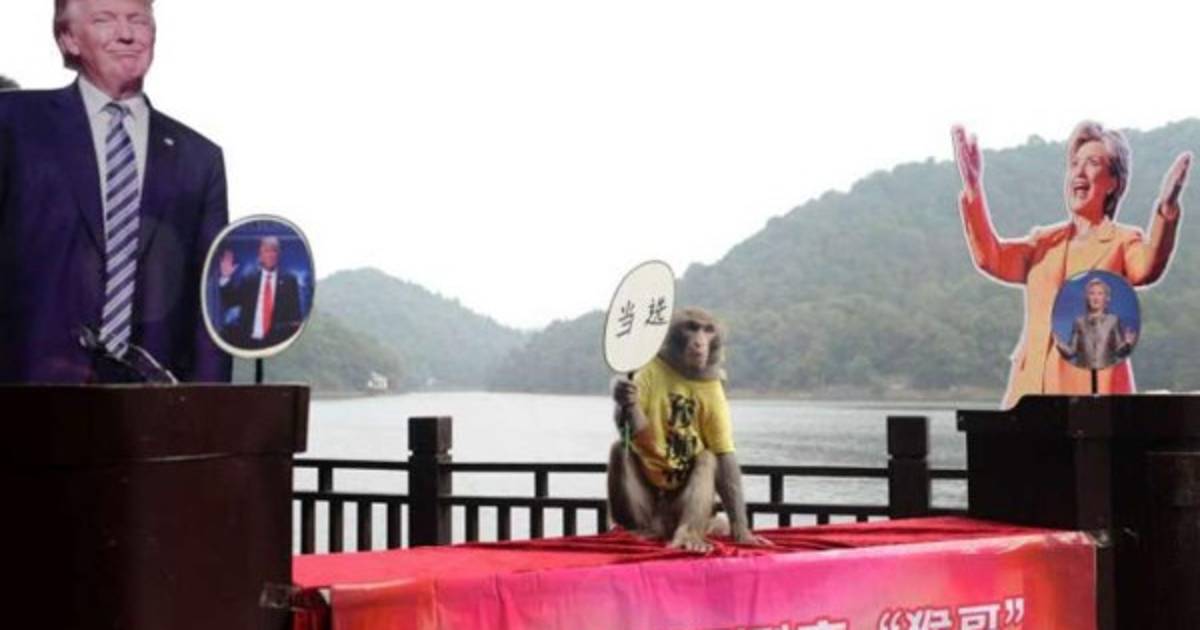 El mono Geda, conocido por sus dotes de adivino, pronosticó el triunfo de Donald Trump en la elección presidencial del martes en Estados Unidos, y felicitó al candidato republicano con un sonoro beso en la boca, anunció el parque chino donde el primate ejerce su 'ciencia'.