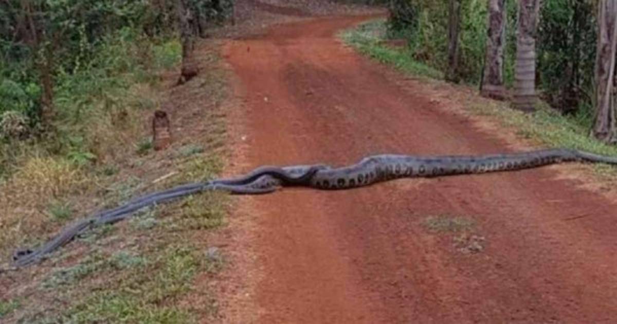 La particularidad de la escena se debe a que la anaconda estaba acompañada por otras serpientes de menor tamaño, que la seguían.