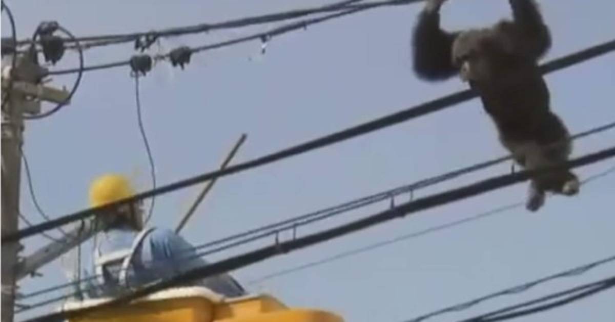 El animal se escapó hoy jueves de un zoológico de Yagiyama, al norte de Japón, y estuvo deambulando durante una hora antes de ser visto subido en el cableado eléctrico.