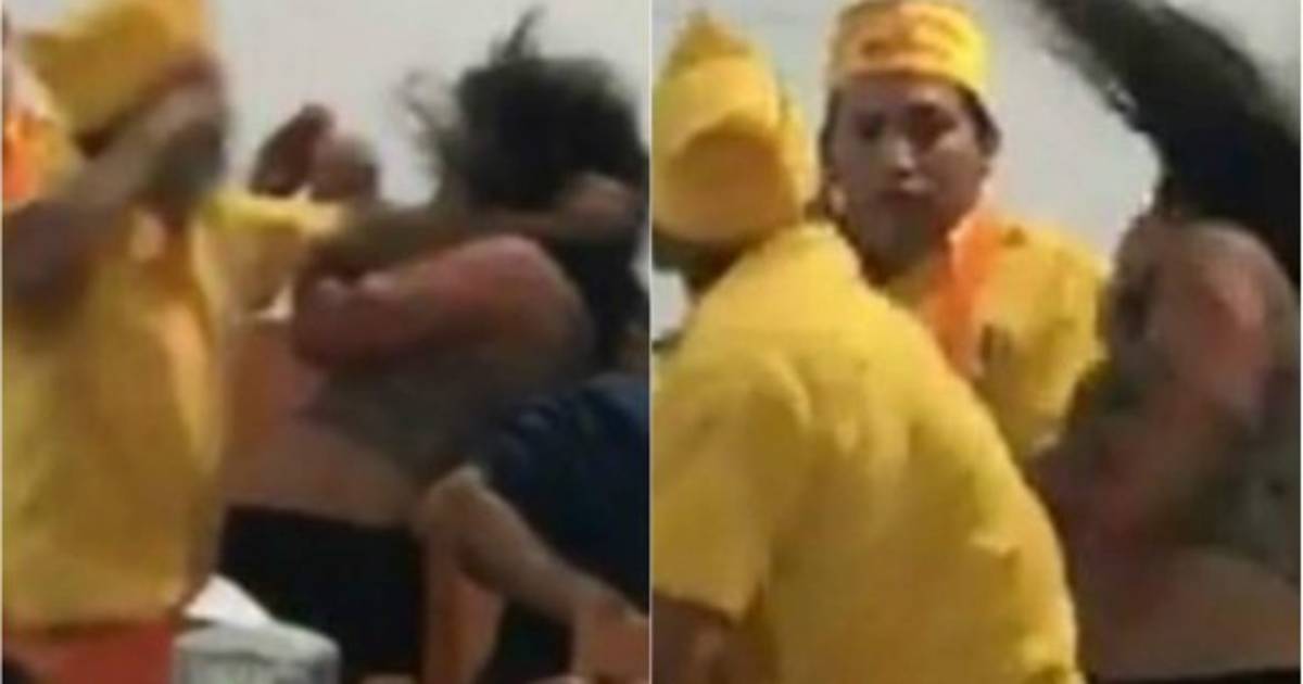 Luego ellos se alejan y la mujer se acerca a reclamarle algo a uno de los tres trabajadores, inesperadamente, éste le lanza un puñetazo en el rostro. Segundos después repite la embestida y le lanza otros dos golpes más directo al rostro, sin que alguna de las personas en el lugar intentara ponerle fin a la situación.