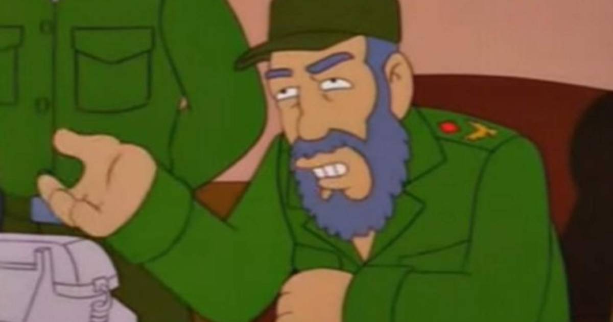 Fidel Castro no escapó al ácido humor de Los Simpsons. Ya en el capítulo 20 de la novena temporada, en 1998, aparece en la famosa serie caricaturizado al lado de los personajes que tanto amamos, Homer, el señor Burns y su asistente Smithers, en un capítulo llamado “Misión imposible” donde roba un trillón de dólares y dice que el comunismo no funciona.