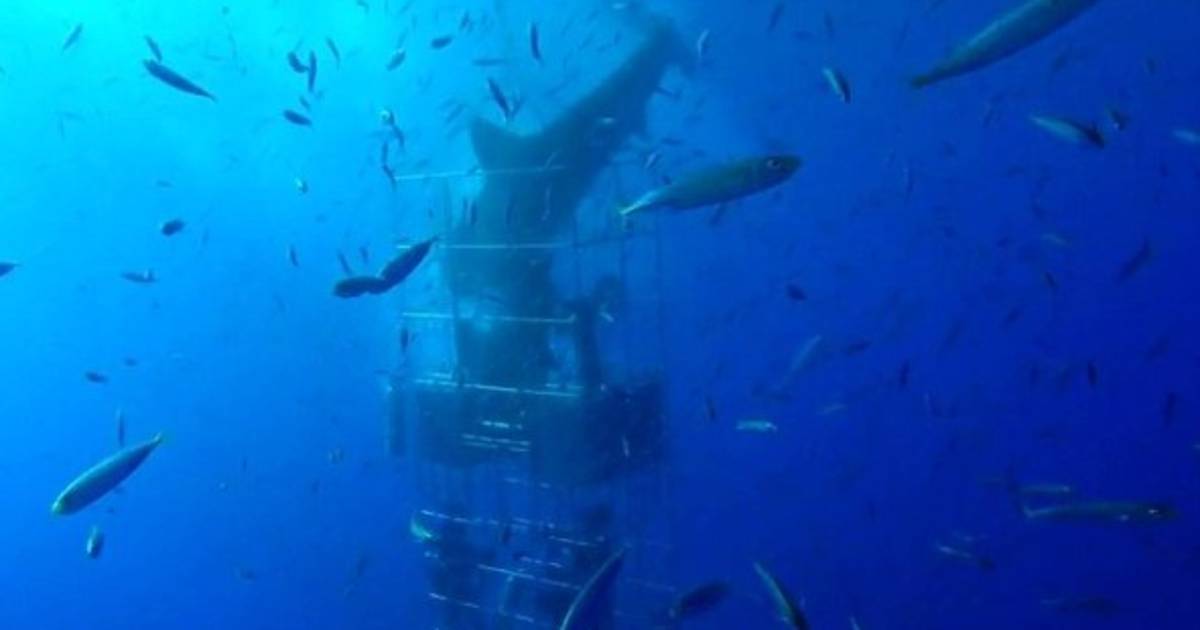 Un fotógramo marino captó el escalofriante momento en un video que se ha viralizado en las últimas horas. Las imágenes muestran al grupo de buzos en las profundidades del océano observando dentro de una jaula cómo se alimentan los tiburones blancos.