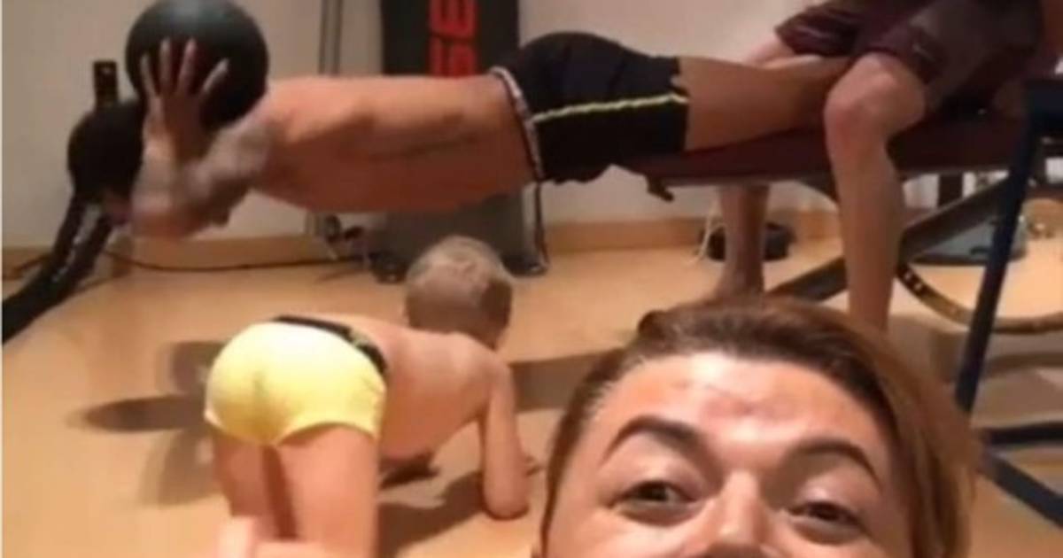 Mientras Neymar realiza una serie de abdominales, su hijo se roba la atención de sus entrenadores y compañeros.