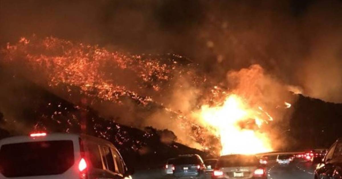Un video tomado por un residente de Los Ángeles mientras circulaba por la autopista 405, la más transitada del país con unos 400.000 vehículos al día, muestra la magnitud de los devoradores incendios en las laderas del Paso Sepúlveda (entre las montañas de la Sierra de Santa Mónica, en Los Ángeles).