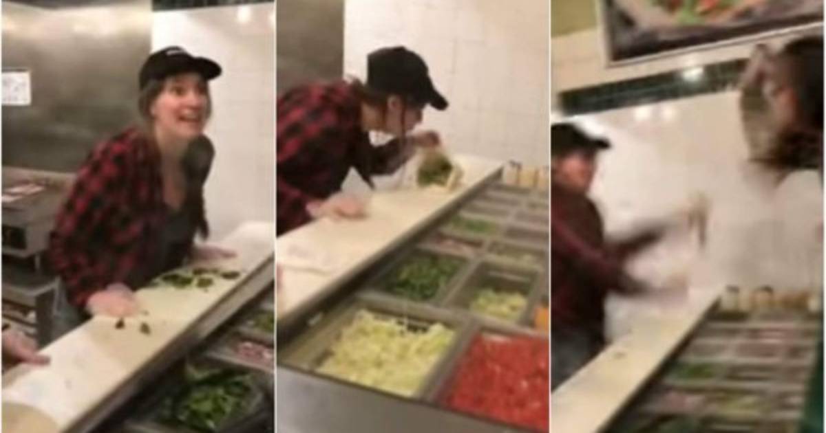En el video publicado en Facebook, se puede escuchar cuando uno de los clientes reta a la empleada a escupir en la comida que está haciendo, la empleada con una sonrisa en su rostro escupe en la comida y el cliente arroja el sandwich, inmediatamente la trabajadora del restaurante intentó subir por el mostrador para golpearla.