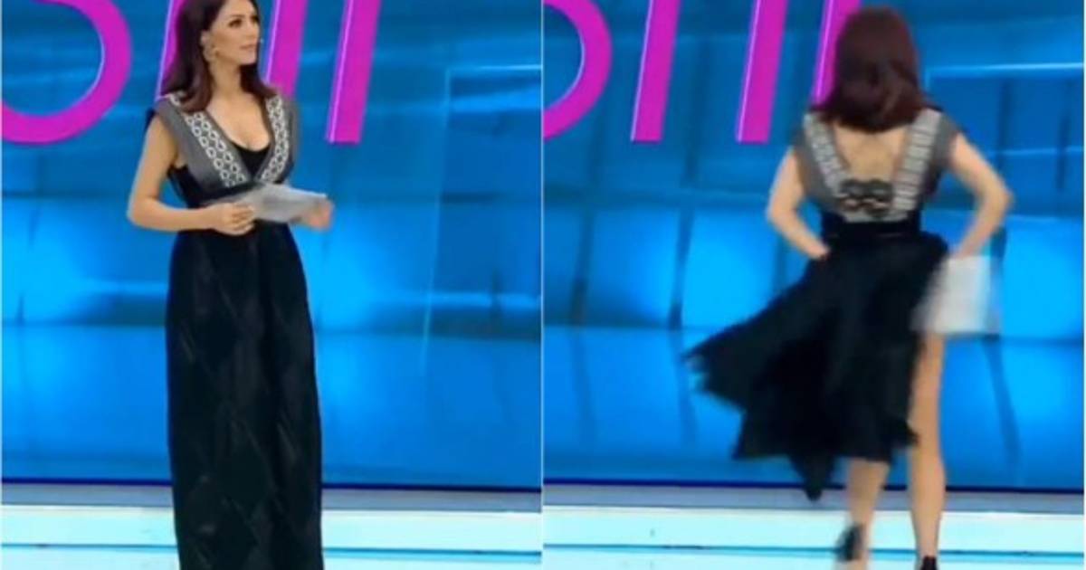 La periodista prestaba atención a lo que decía una persona en el set, cuando, de repente, levantó su larga falda negra y dejó ver su ropa interior.