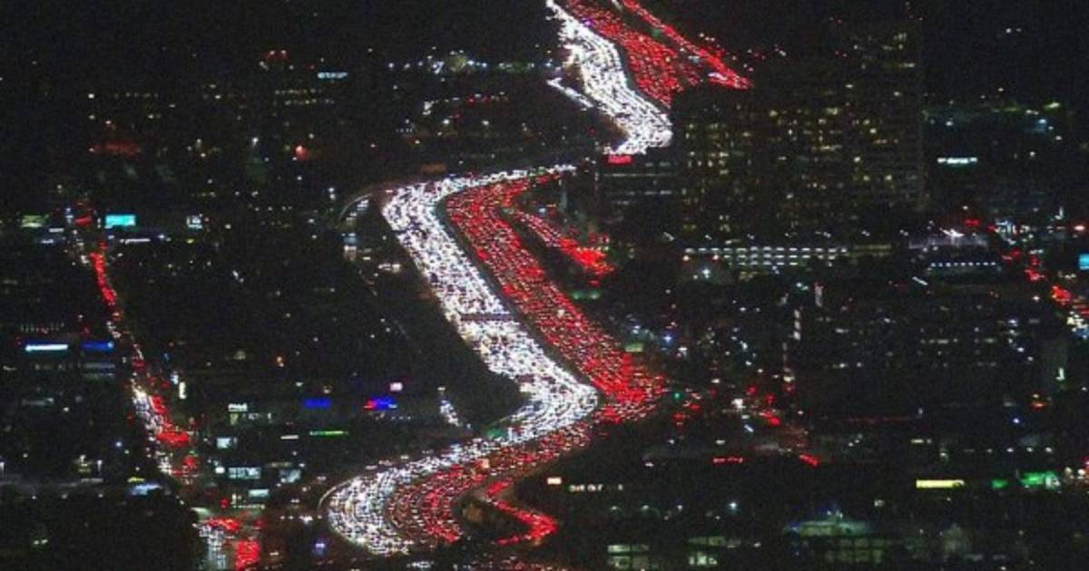 Imágenes tomadas por un helicóptero de noticias mostraron un gigantesco embotellamiento en la ruta interestatal 405, mientras miles de familias intentaban salir de la ciudad para festejar el Thanksgiving Day con sus seres queridos en otras ciudades o estados.