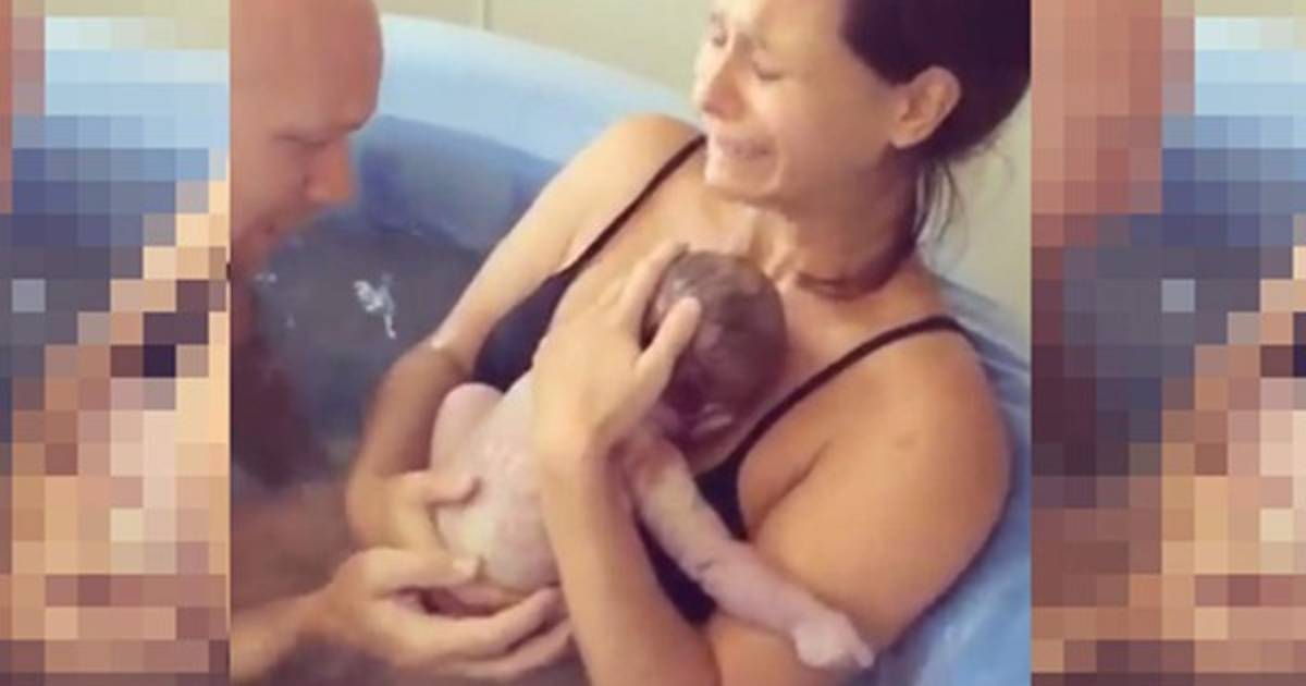 La comadrona que acompañó a Audra, la mujer que dio a luz, publicó el video, donde se mira como la mujer está en una bañera, pujando y lista para sostener al bebé.