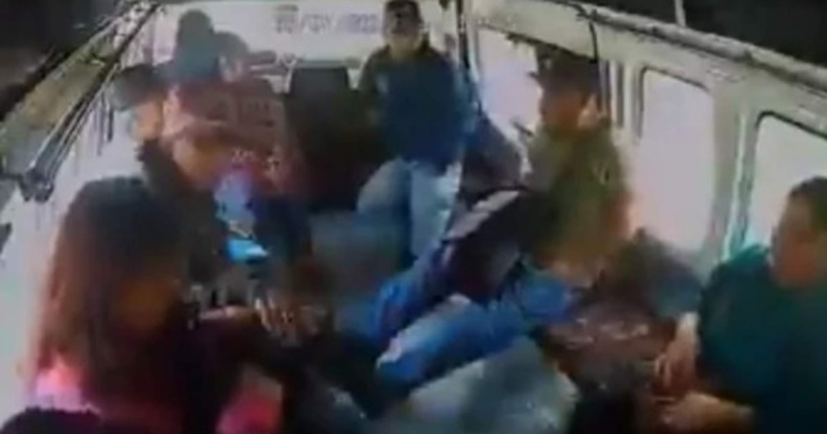 Una cámara de seguridad que iba instalada en un microbus captó el momento en el que unos ladrones despojan de sus pertenencias a los usuarios.