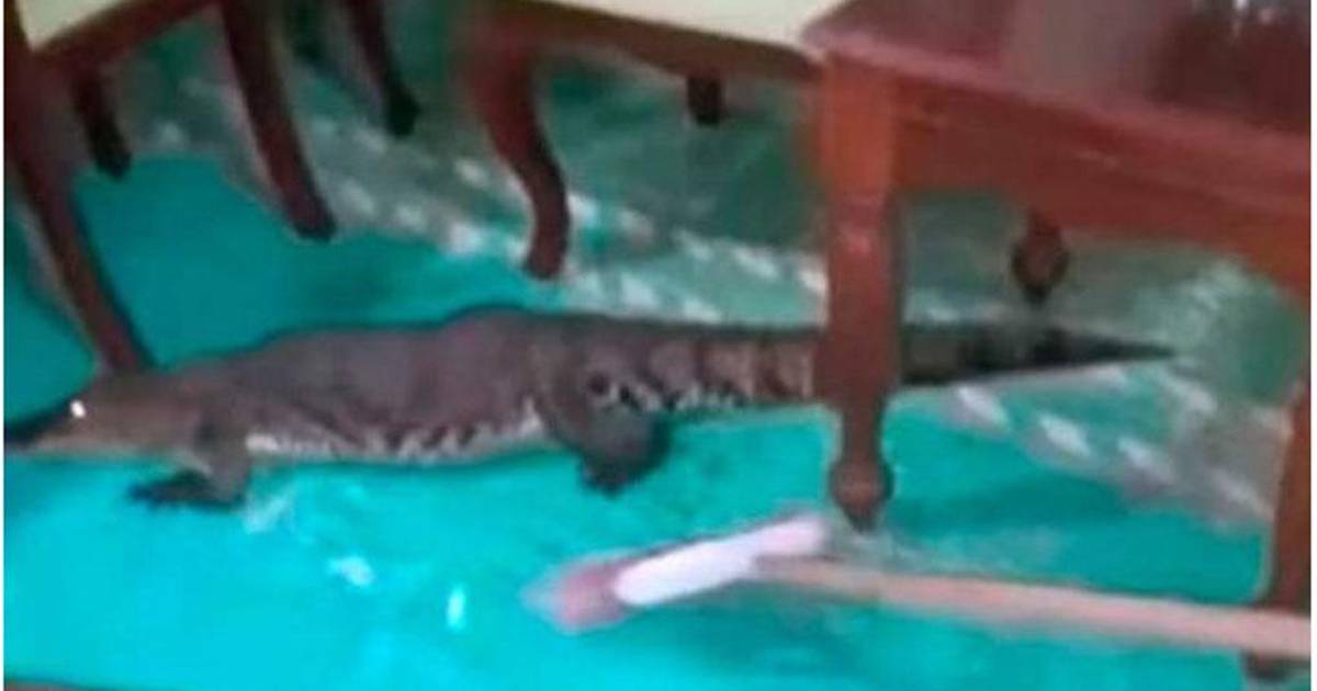 Finalmente, la mujer logró sacar al cocodrilo de la casa con éxito.