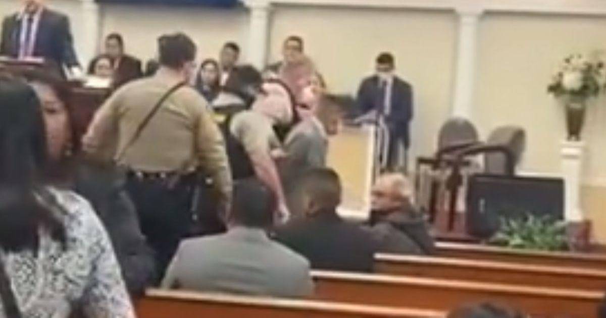 En un segundo video se ve cuando un miembro de la iglesia sale esposado y acompañado por unos policías ante el reclamo de la que supone es su esposa. Incluso algunas de las mujeres comienzan a llorar.
