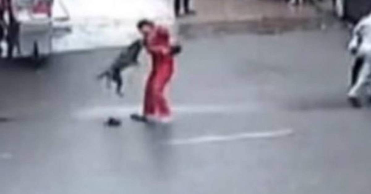 Un video en YouTube muestra como el canino sale de pronto y se le abalanza a un hombre, le clava los dientos en su brazo y luego en su hombro, desesperado el sujeto se lo quita dándole con una camiseta que tenía en su mano.