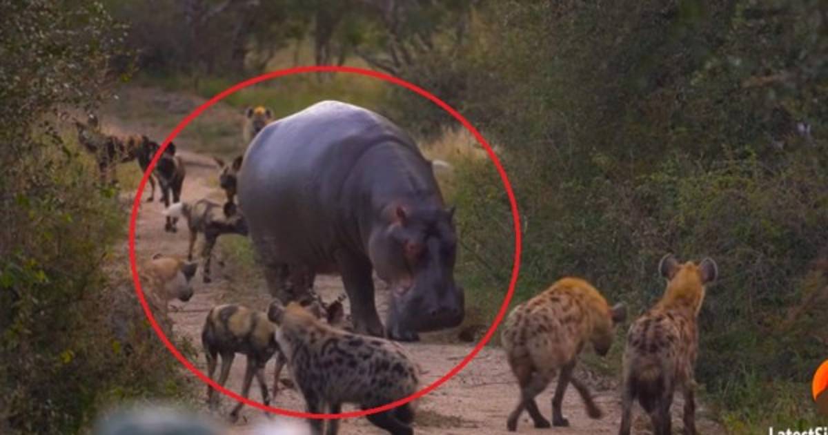 Primero, vio a un hipopótamo persiguiendo a un impala en el agua, mientras que decenas de depredadores estaban esperando a su presa en la orilla. Los animales salvajes trataron de intimidar al enorme hipopótamo, pero este no tuvo miedo y se mostró imponente.El gigantesco hipopótamo salió del agua y se acercó a los perros salvajes, que pronto desaparecieron en la selva en busca de otra oportunidad de desayunar.