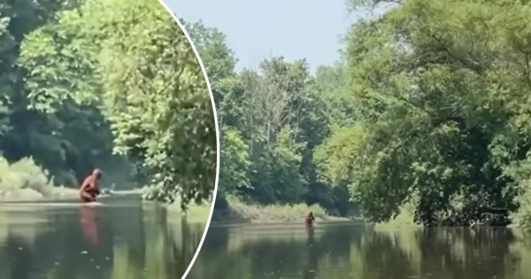 En las imágenes se puede observar a la extraña criatura de pelaje marrón entrando al río para cruzarlo. El turista explicó a medios locales que sacó su celular y grabó a una distancia prudencial el paso de este extraño ser.