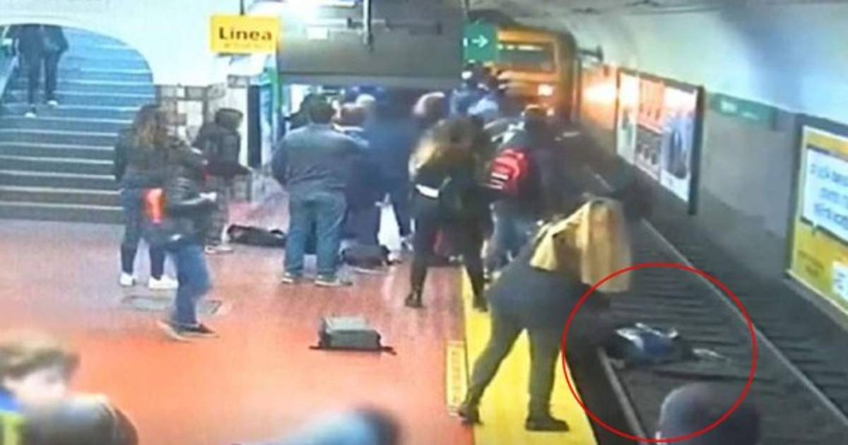 Una mujer sobrevivió tras ser arrojada a las vías del metro de Buenos Aires por un hombre que se desmayó y chocó con ella justo cuando entraba un tren en la estación, algo que se ve en un video que se hizo viral este jueves en Argentina.