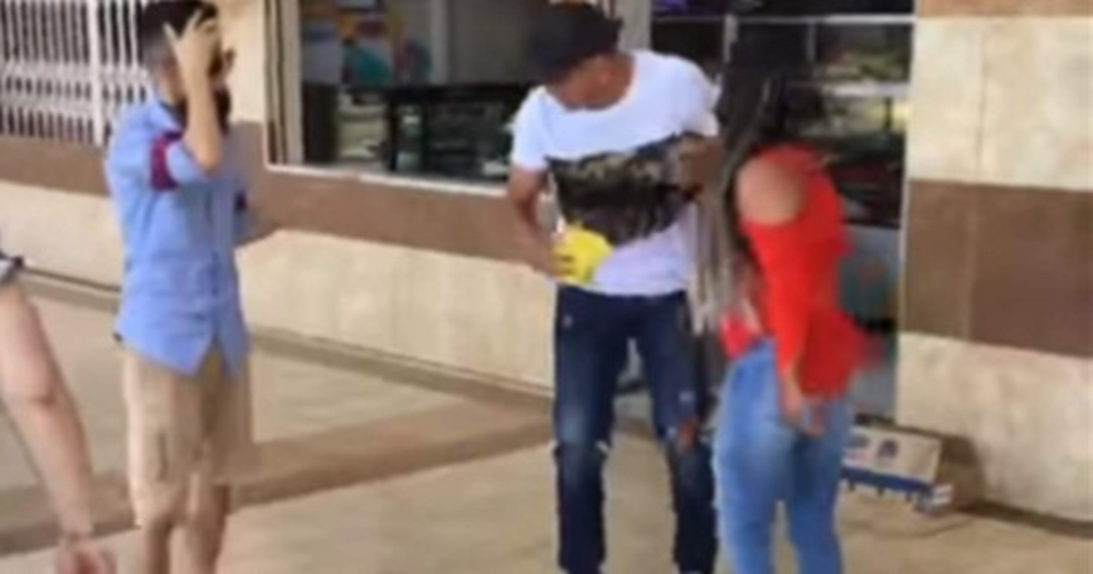 En el clip también se observa cuando la mujer golpea al supuesto amante. “Estaba comiendo con él, ¿eso es malo?”, se escucha decir al joven, mientras es encarado por su enfurecida novia.