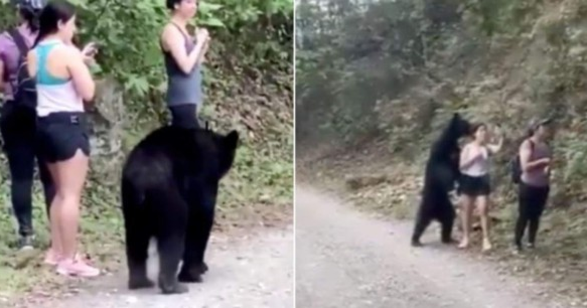 En las aterradoras imágenes se observa cómo el animal se acerca a una de las jóvenes y comienza olfatear; la mujer se queda quieta como una estatua para evitar asustar al animal.