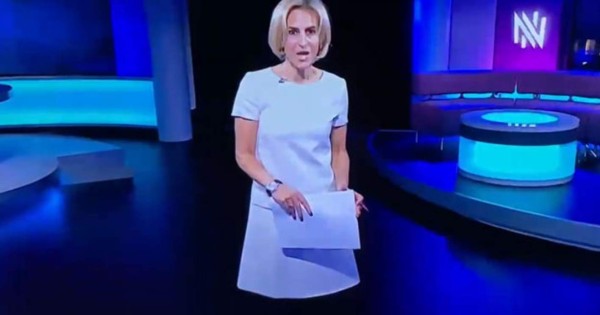 ¿Cómo se quedó sin piernas? Resulta que Maitlis llevaba un vestido blanco y medias negrasajustadas, pero debido a la oscura iluminación del estudio en esa oportunidad, sus piernas simplemente 'desaparecieron'.