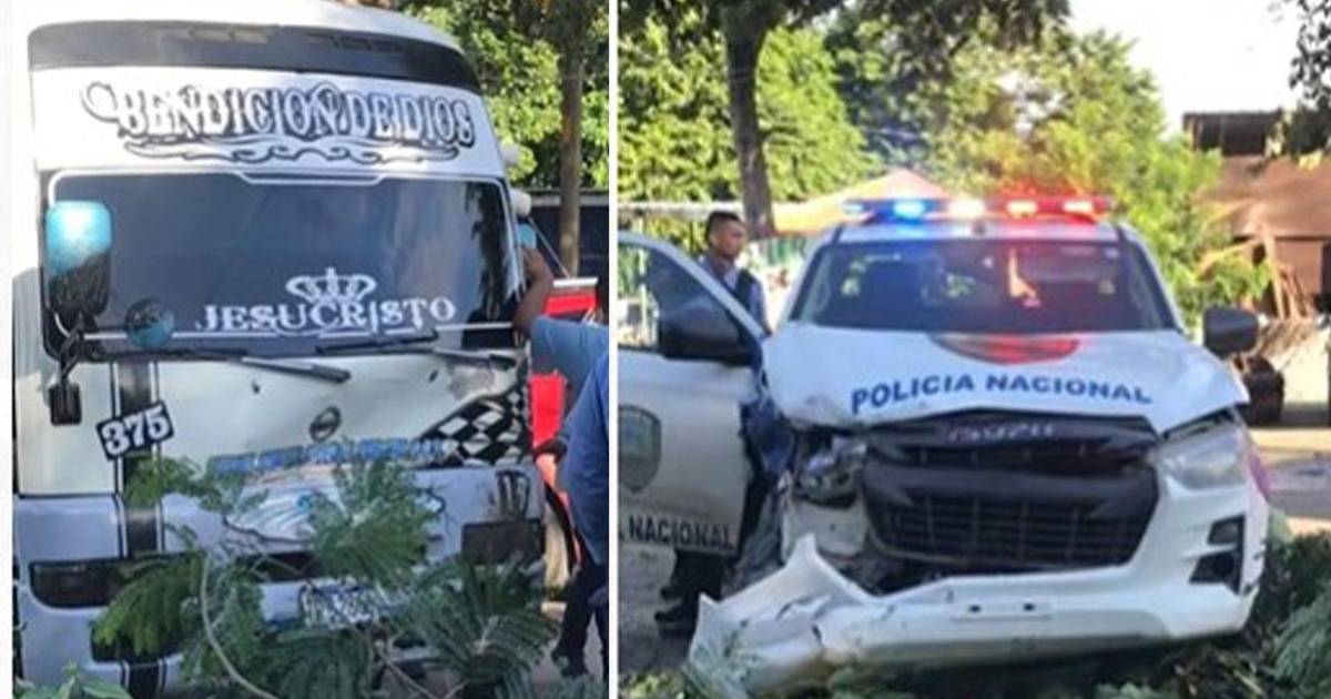 El accidente entre una patrulla de la Policía Nacional y un bus del transporte público que cubre la ruta urbana Aldea El Carmen-Centro se ha viralizado en las últimas horas en las redes sociales.