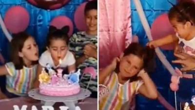 Luego de internautas sugirieron que la niña que apagó la vela de cumpleaños en el pastel de su hermana, era hija de Karla Panini y Américo Garza, la ex lavandera recreó el video viral.