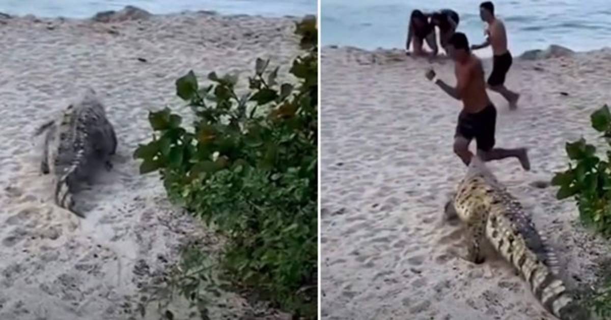 Un video viral de TikTok muestra el impactante momento en que un gigantesco cocodrilo ahuyentó a unos bañistas en una playa.