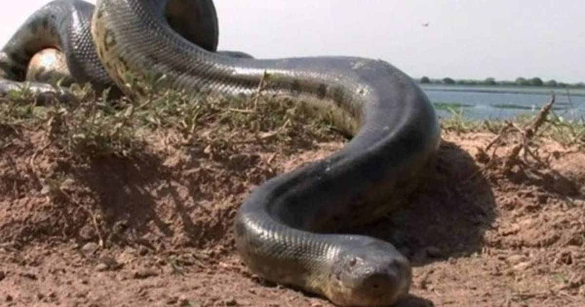 La gigantesca serpiente salió del agua y se quedó en la orilla del río, cerca de las sombrillas de los veraneantes. El animal deslizaba su cuerpo sobre la superficie, pero no causó daño a nadie.