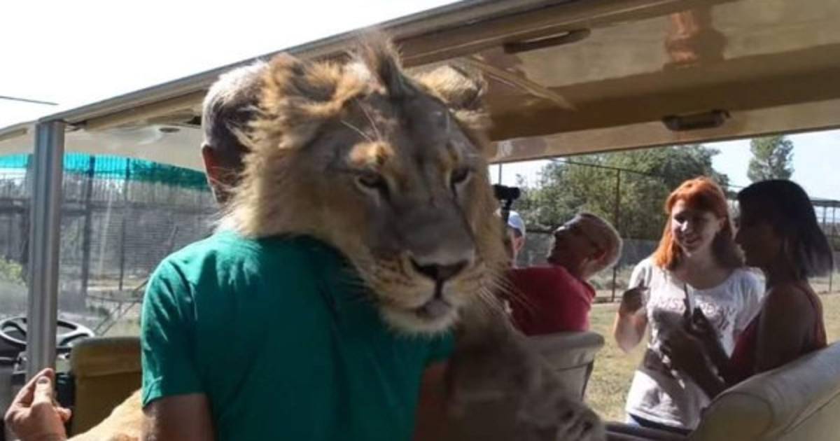 El león se acercó al coche como si quisiera conocer mejor a los pasajeros. Luego se dirigió al conductor del vehículo, lo empujó, para acariciarlo y abrazarlo.Los turistas, sin embargo, no se mostraron asustados; por el contrario, sonrieron y tomaron fotos y videos.