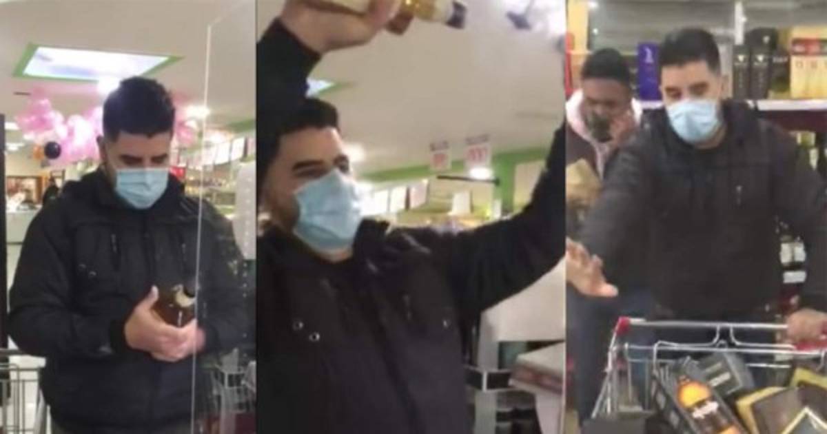 En el video se ve cómo el joven corre directamente a la sección de licores y justamente agarró los más costosos. Solo se centró en ellos. El tiempo fue pasando, dejó prácticamente vacío un estante y cuando se disponía a continuar con otro, el tiempo finalizó.