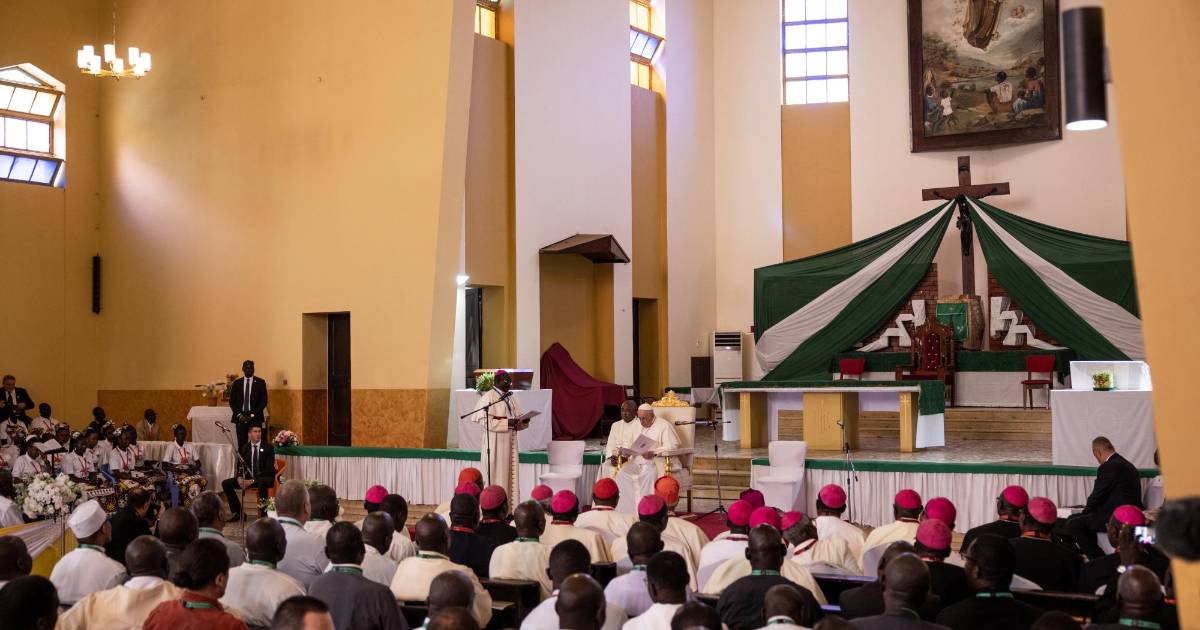El Papa Francisco se reunió con líderes de la Iglesia Católica en febrero en Juba, Sudán del Sur.