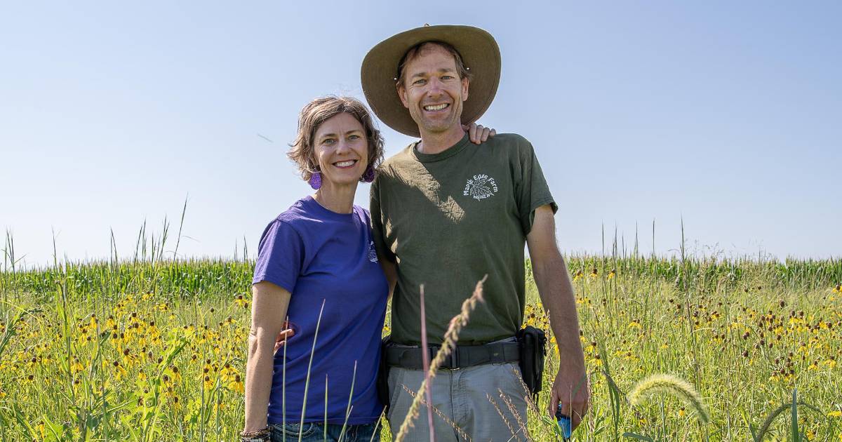 Jon Bakehouse y su esposa, Tina, han plantado franjas de pradera en su granja en Hastings, Iowa. (Annick Sjobakken para The New York Times)