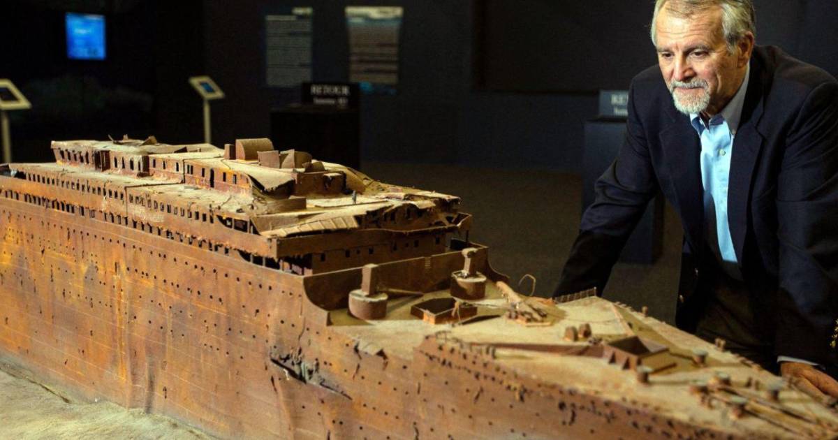 Paul-Henri Nargeolet, que murió a bordo del Titán en junio, con un modelo del Titanic descansando en el lecho del mar.