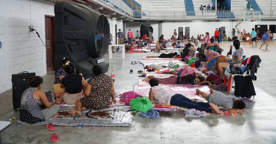 En los albergues del polideportivo Olímpico, Gimnasio Municipal, Centro de Educación Básica Fidelina Cerros, escuela Ramón Villeda Morales, centro básico Altagracia Sánchez, centro básico Edgardo Alanís Lagos y albergue deportivo La Pradera cuentan con asistencia médica, los tres tiempos de comida y les han proporcionado colchonetas para dormir.