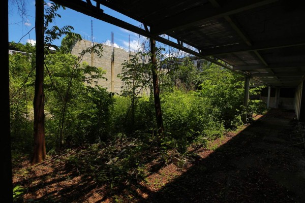 Después de casi cinco años de abandono, una diversidad de plantas espinosas, arbustos y enredaderas se apoderaron de los recintos, paredes, ventanales, así como de las bartolinas, unas terminadas y otras inconclusas.