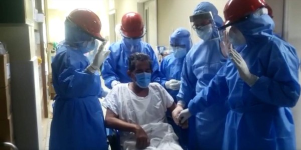 El personal del Instituto Hondureño de Seguridad Socia (IHSS), que a diario recibe alrededor de 15 personas con síntomas o nexo epidemiológico por coronavirus, despidió con una oración y aplausos un a paciente que venció la mortal enfermedad.