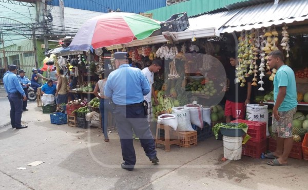 Elementos de la Policía Nacional desalojaron a vendedores y ciudadanos en el mercado San Isidro.
