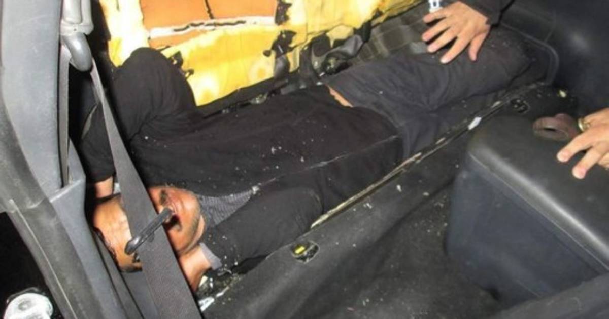 Un perro de policía alertó de algo en el asiento trasero del vehículo, y cuando los funcionarios inspeccionaron el asiento encontraron al ciudadano mexicano, de 48 años, constreñido en el compartimento.