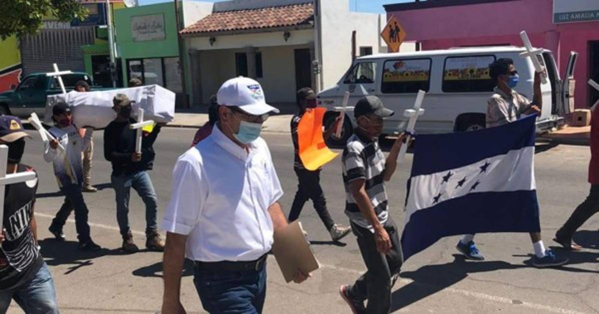 Los migrantes por su parte salieron a marchar en Caborca para pedir respeto, ya que 'somos trabajadores internacionales', dijeron.