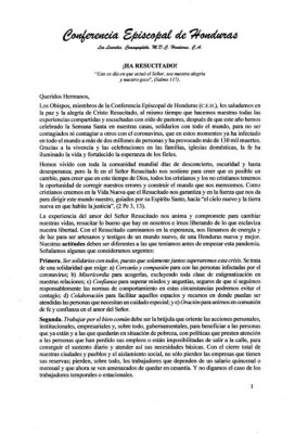 La Iglesia Católica en Honduras, a través de los obispos que integran la Conferencia Episcopal de Honduras, envió este jueves un mensaje para la Pascua 2020 y sobre la pandemia del COVID-19 que vive el país y el mundo.