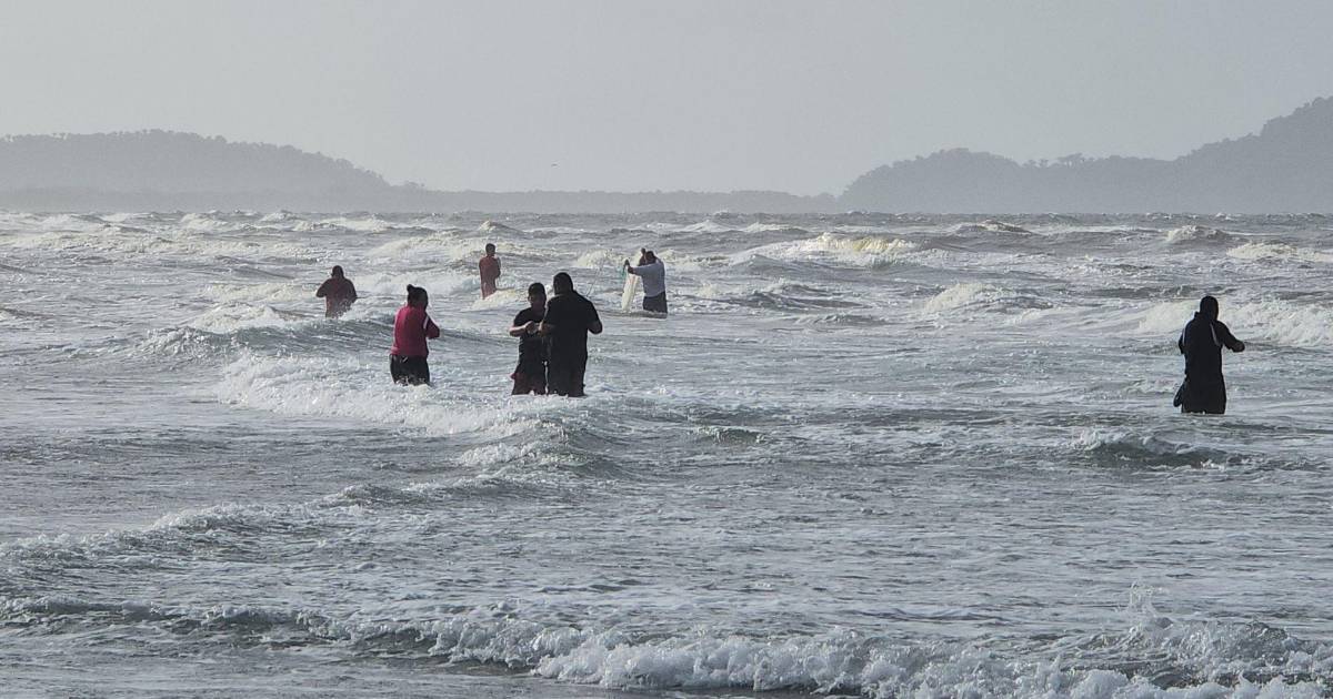 Hombres, mujeres, niños y ancianos se adentran varios metros dentro del oleaje, a veces con el agua a la cintura, siguiendo una costumbre que parece coreografiada con el estruendoso vaivén de las olas y la fuerza de los vientos caribeños.