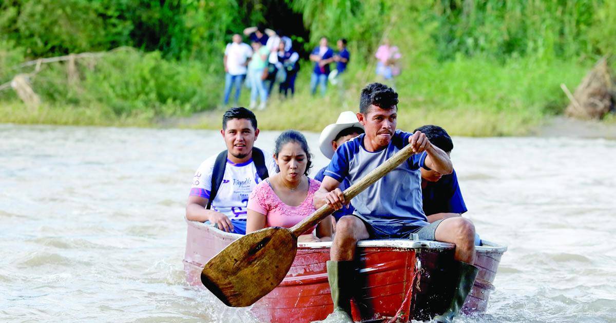“Primero me tengo que ir contra la corriente por toda la orilla. Subo hasta cierta parte donde no hay piedras y cruzo. Ahí toca remar rápido para que no me arrastre la corriente. Lo mismo hago del otro lado. Solo puedo pasar a cuatro personas por vez y gracias a Dios jamás hemos tenido ningún percance”, cuenta Pineda.