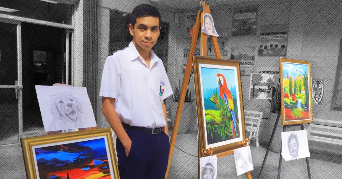 Ramón Ernesto Irías, diagnosticado con autismo nivel 1, pinta y es excelencia académica en Intae. Anhela vender sus cuadros para comprar un boleto de avión o ganar una beca que lo lleve a España y ser paleontólogo