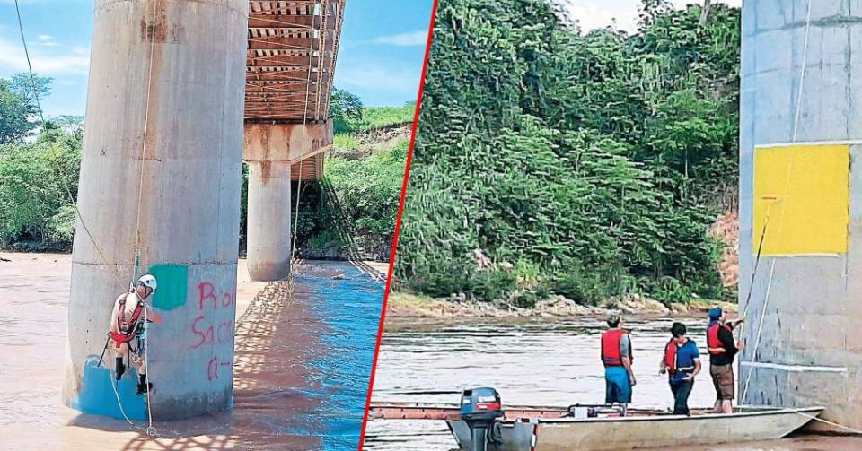 El joven bombero Geovanny Núñez se ató varias cuerdas al cuerpo, hizo nudos, colocó arneses y ubicó un par de cuerdas de seguridad. Su meta era bajar por una de las bases del enorme puente Bayley que comunica a este municipio con la cabecera santabarbarense.