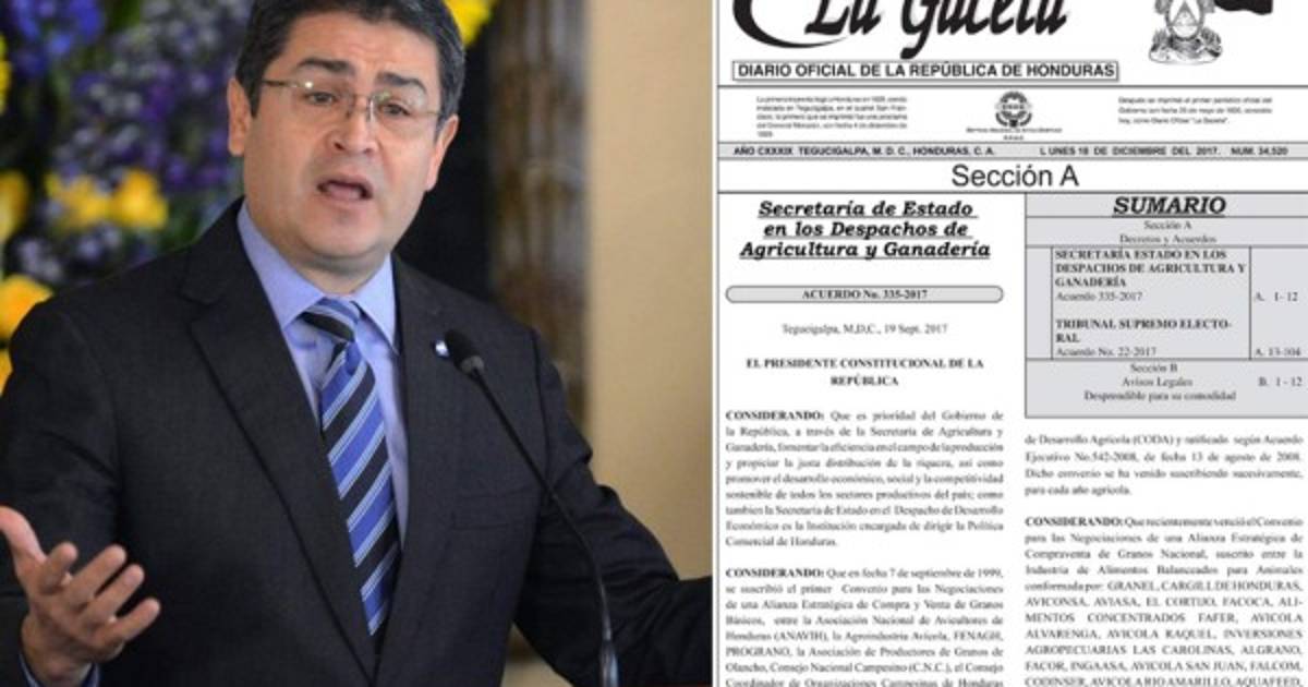 “Recibidas todas las actas de cierre de cada Mesa Electoral Receptora (MER) del nivel electivo presidencial y después de haberse efectuado las operaciones matemáticas en forma precisa clara, en forma digital y computarizada, previo al análisis, verificación y sumatoria, contenidas en las mismas se practicó el escrutinio general ordenado en la Ley y habiendo realizado escrutinios especiales en cinco mil setecientos cincuenta y nueve (5,759) Mesas Electorales Receptoras, constatando la voluntad del pueblo hondureños, expresadas en las urnas, se determinan los siguientes resultados... Juan Orlando Hernández 42.95% de votos válidos, Salvador Nasralla, de la Alianza de Oposición 41.42%”, dice La Gaceta.